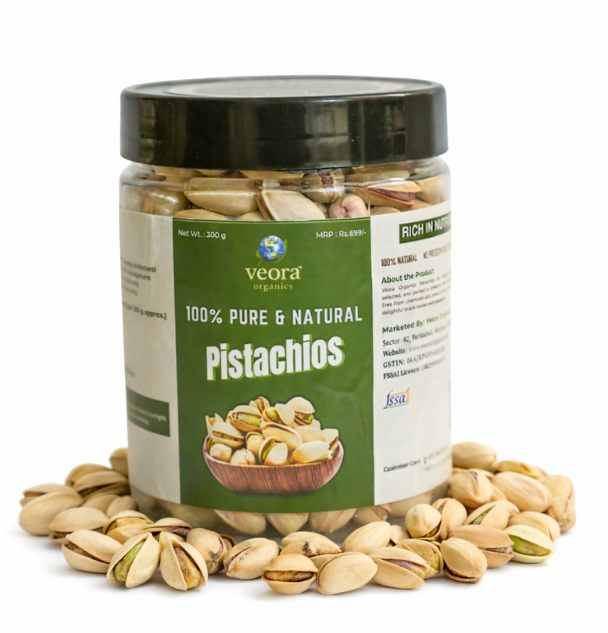 - Treat yourself to the crunchy, wholesome goodness of Veora Organics Pistachios. Sourced directly from trusted farms and packed with care, these 100% pure, organic, and natural pistachios are free from preservatives, additives, and artificial flavors.