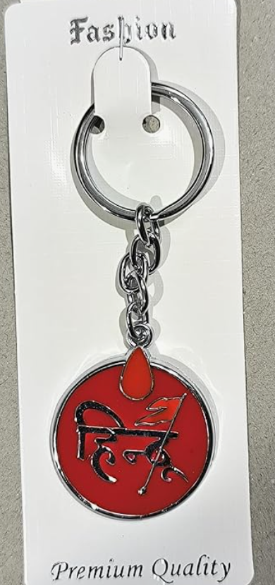 Premium Chinese Character Metal Keychain, Red Circle Design with Chain Link, Silver Ring