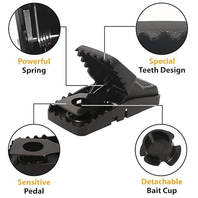- EXTREMELY QUICK TRIGGER: The mouse traps with open trap design, is easier for mouse find and approach, quick response trigger, once the mouse slightly touch the mouse trap, the device will immediately incapacitate rats by shutting down the wide mouth clip tightly, no way to escape.
