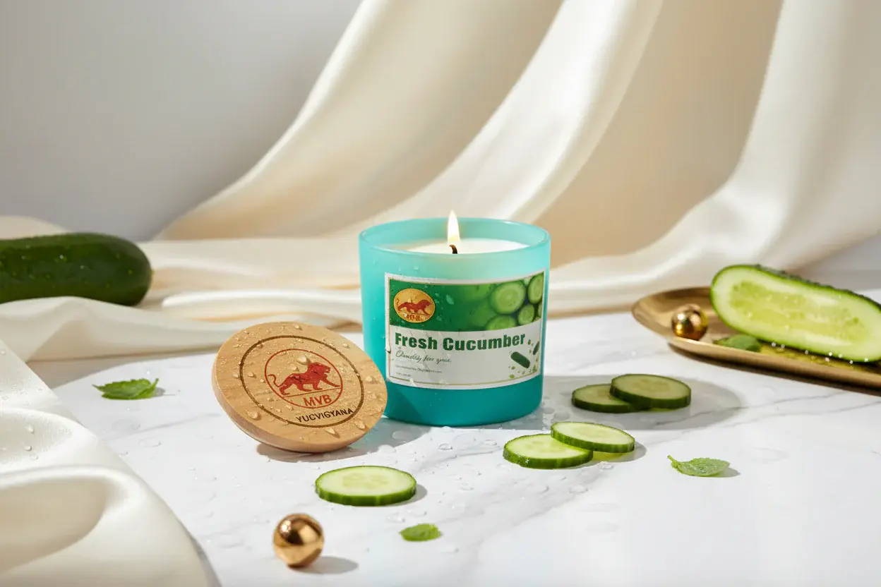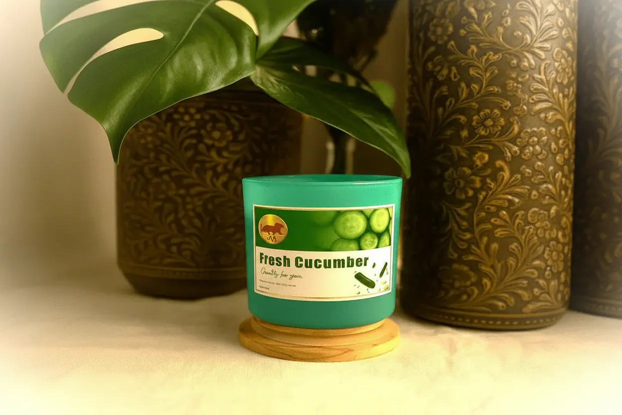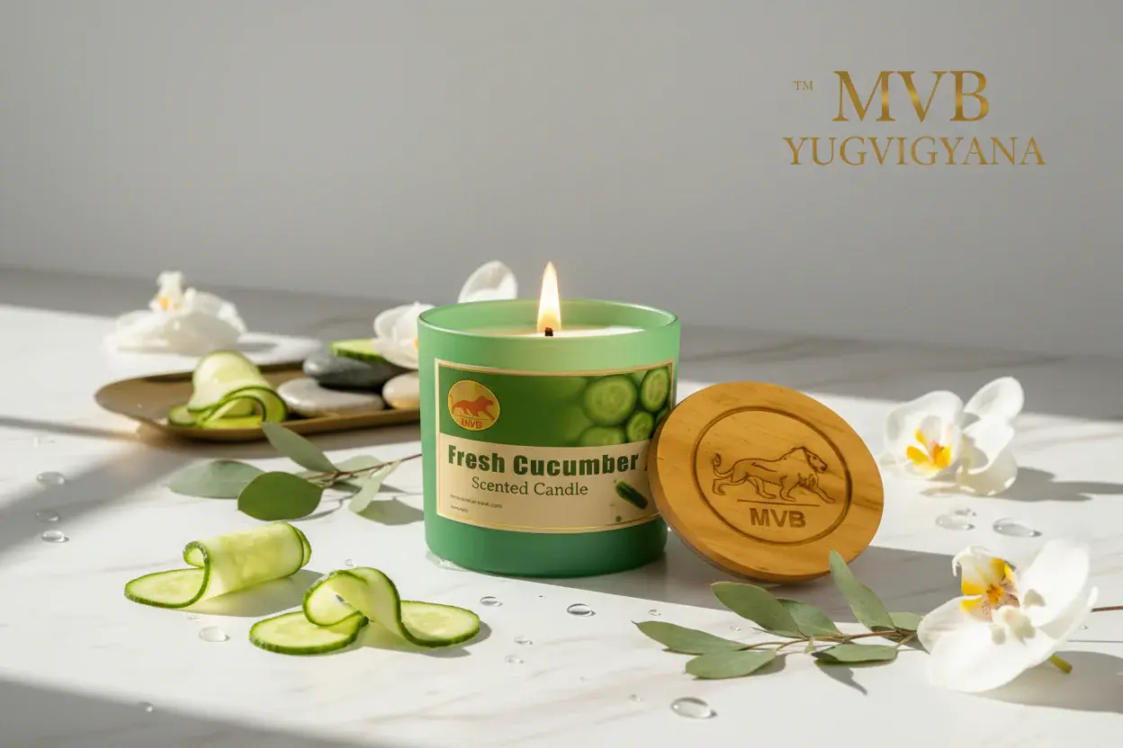 A New, Refreshing Retreat in a Sea Blue Luxury Glass Container! The MVB Vegan Organic Hand-Poured Soya Wax Candle unites nature, style, and environmentalism in one exquisitely crafted item. Scented with the fresh, refreshing fragrance of Cucumber Essential Oil, this candle produces a warm, soothing ambiance—ideal for stress relief, meditation, or just bringing a hint of freshness to your abode.