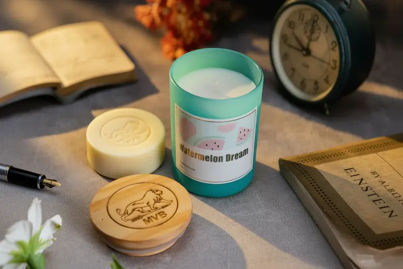 A splash of freshness, a hint of luxury! The MVB Vegan Organic Hand-Poured Soya Wax Candle, exquisitely packaged in a classy sea blue glass jar, is the epitome of sustainability, elegance, and sensory pleasure. Scented with the succulent, fruity aroma of Watermelon Essential Oil, this candle brings refreshing, invigorating energy into your space, and it's an absolute must-have for your abode.