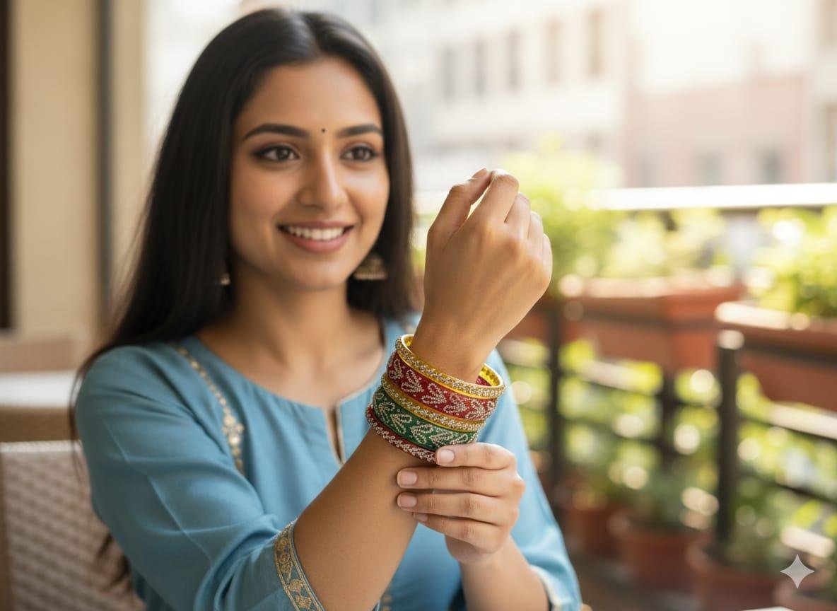 - Swara Creations Women's Multicolor Glass Bangles β Classic multicolor glass bangles with traditional Indian appeal β ideal for everyday ethnic wear or gifting.