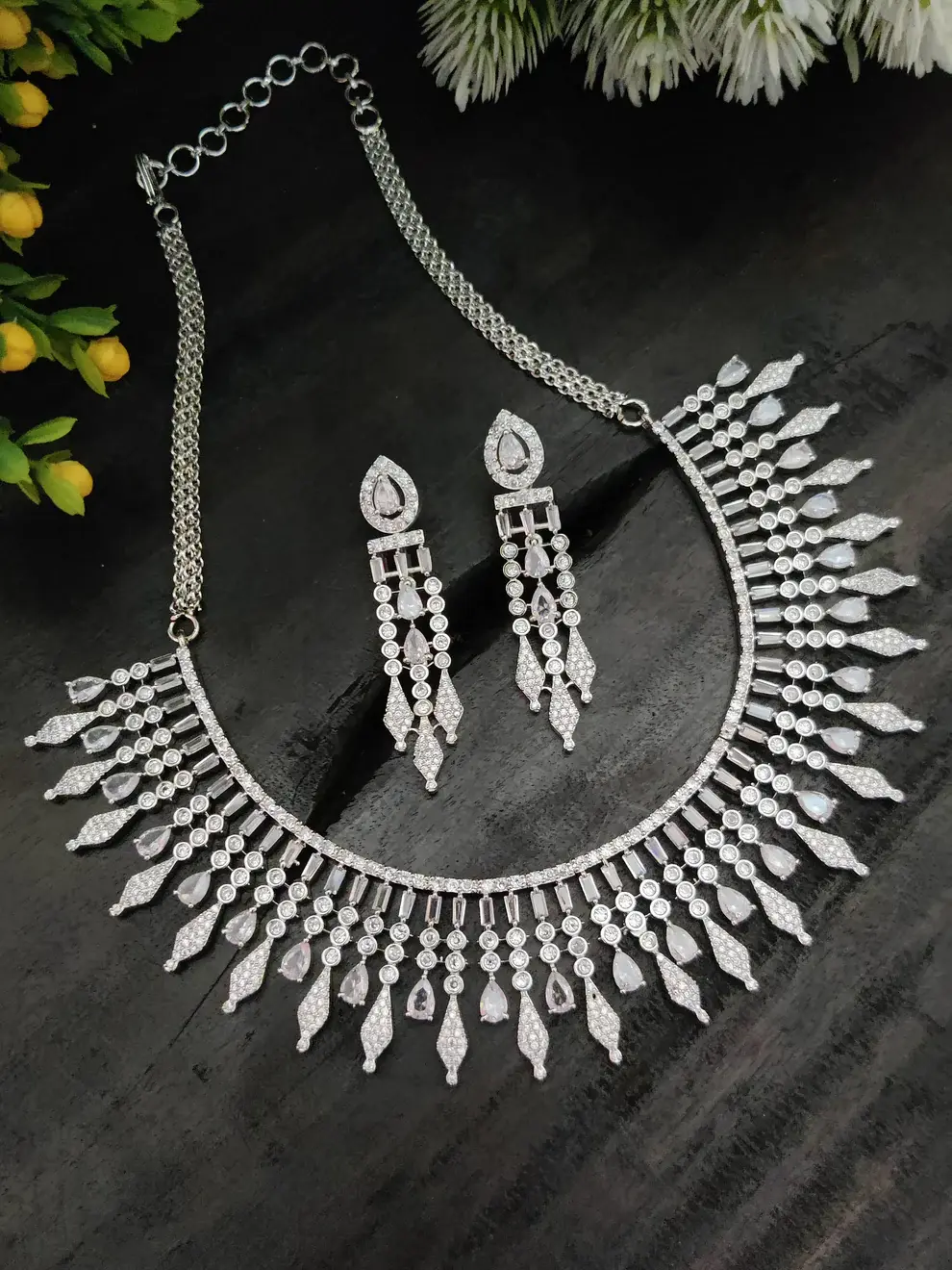 ✨ Silver-Toned Cubic Zirconia Necklace Set ✨