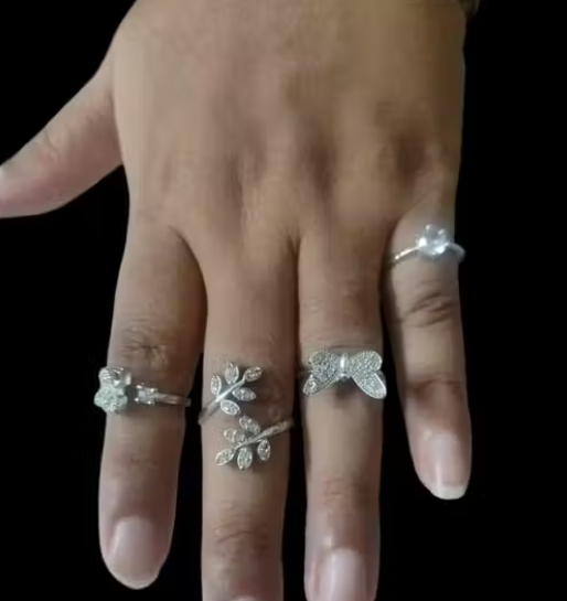 Sterling Designer Silver Adjustable Hand Ring For Women