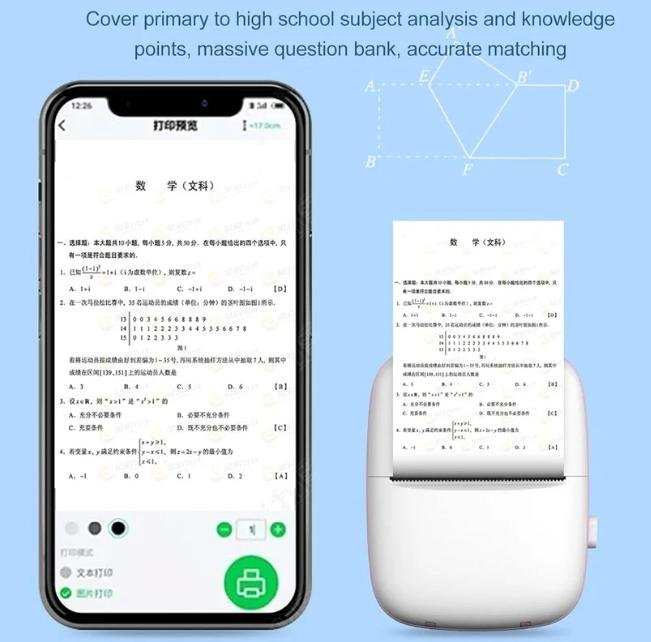Multi-function app pocket thermal printer connects to mobile phone via Bluetooth. Supports photo printing, graphic and text editing, and can print pictures, receipts, notes, lists, messages, QR codes, and more. - Included Components: 1 Roll