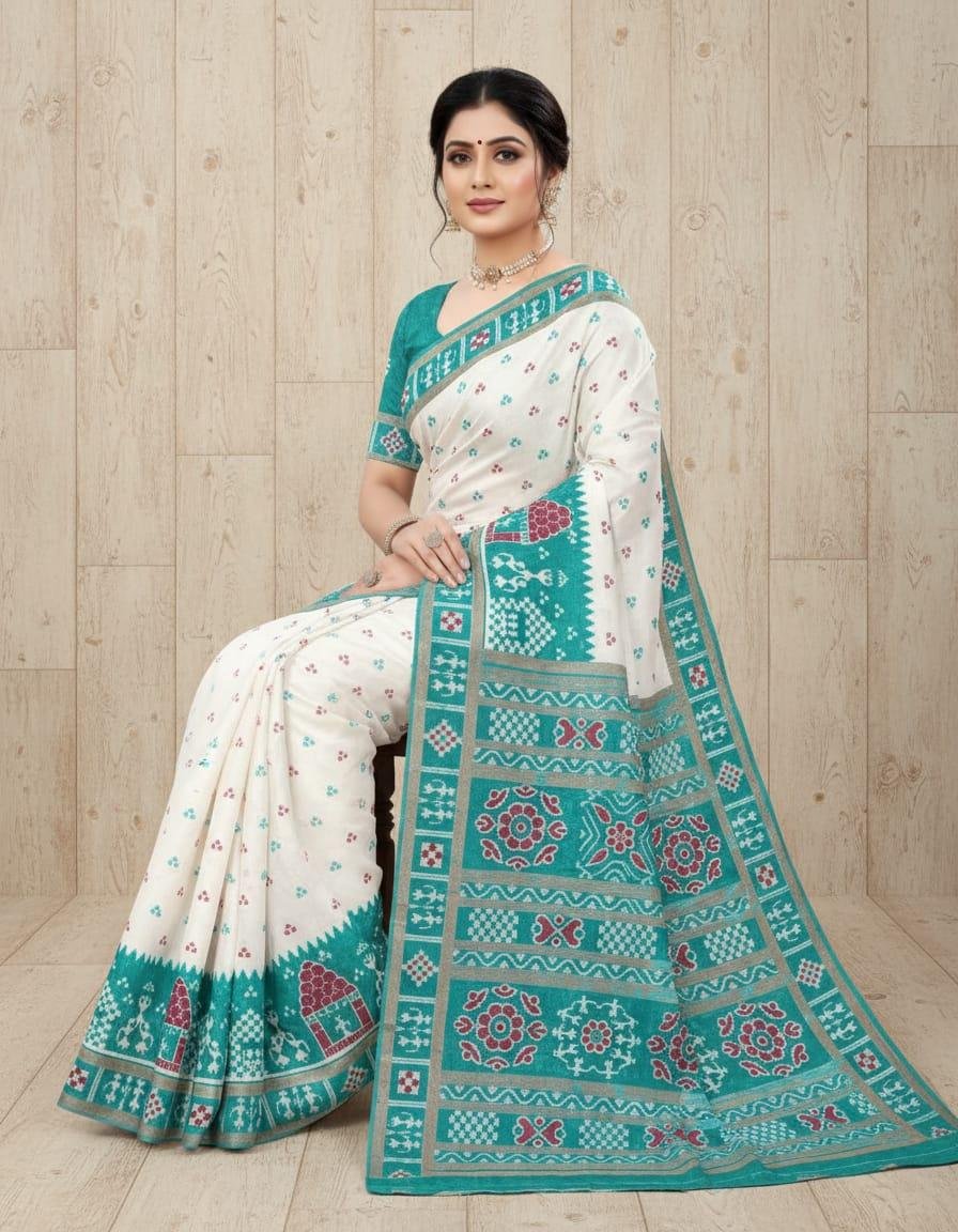 Lightweight printed saree with blouse piece — good for daily office wear or casual use.