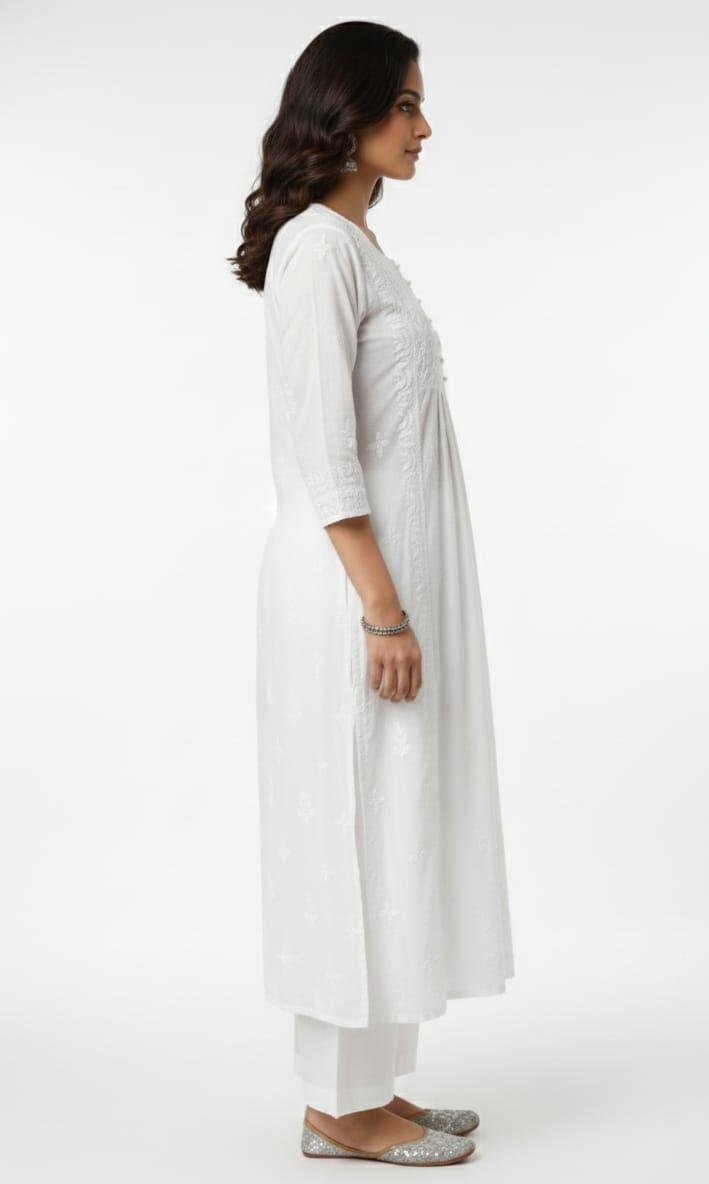 Mul mul kurta dyeable fabric with great comfort and have hand embroidery from the artisans of Lucknow can be carried casually for Royal look.