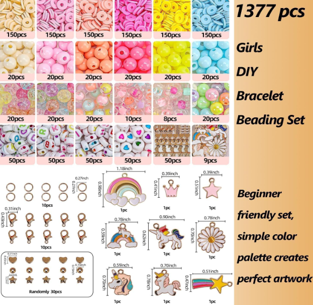 - ✦craft kits for kids: Your will get 1377pcs jewellery making kit, 600 pcs clay beads, 120pcs colourful pony kandi beads,100pcs Rainbow Beads, 200pcs Letter Alphabet Beads, other includes flower, alphabet, pearl, butterfly, fruit, star etc