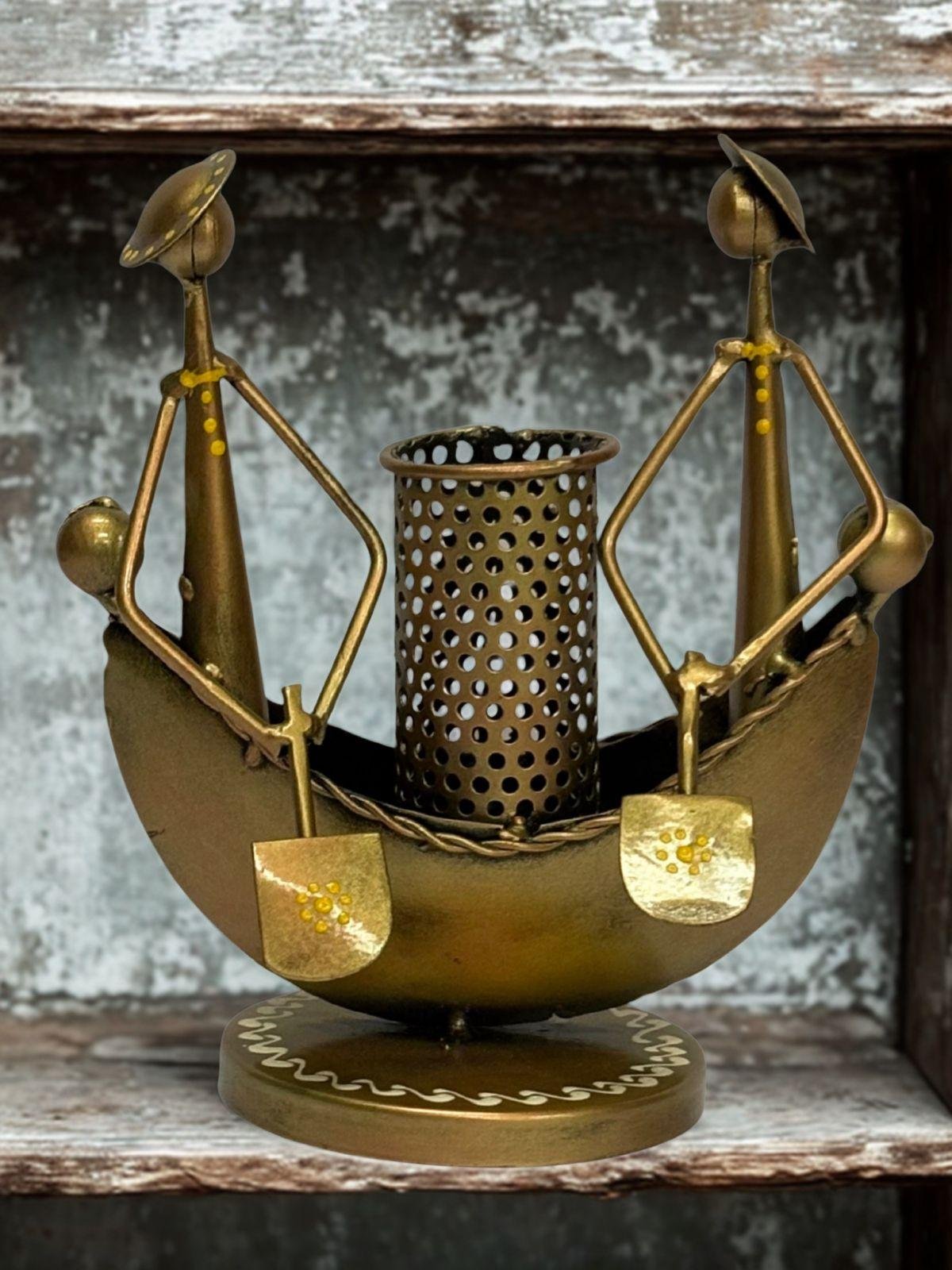- The Pen Holder Comes in a Design With Men Sailing a Boat With The Stand. Of course not Regular Pen Stand, but a Perfect Combination of Modern Art with the Traditional Decoration. Bring This Unique Pen Stand To Your home and Feel Organized with Amusing Decorative Showpiece.