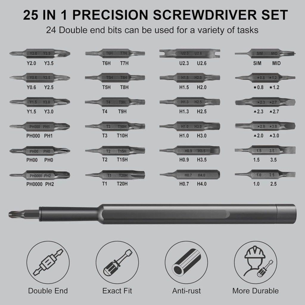 - The 24 Pieces Mini Screwdriver Kit is a compact, versatile toolset designed for precision work and convenient portability.