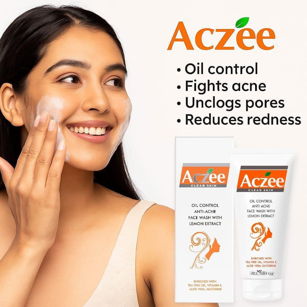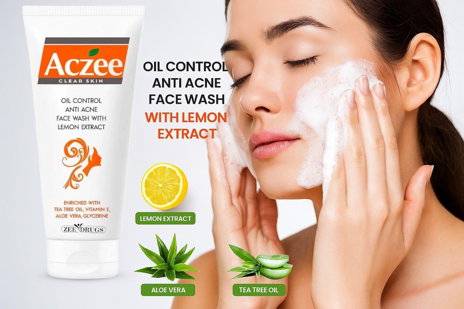 Aczee Clear Skin Face Wash – Oil Control & Anti-Acne with Lemon Extract, Tea Tree Oil, Vitamin E, Aloe Vera & Glycerine