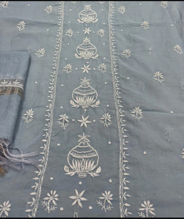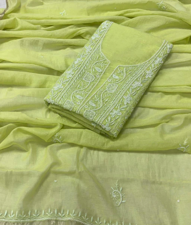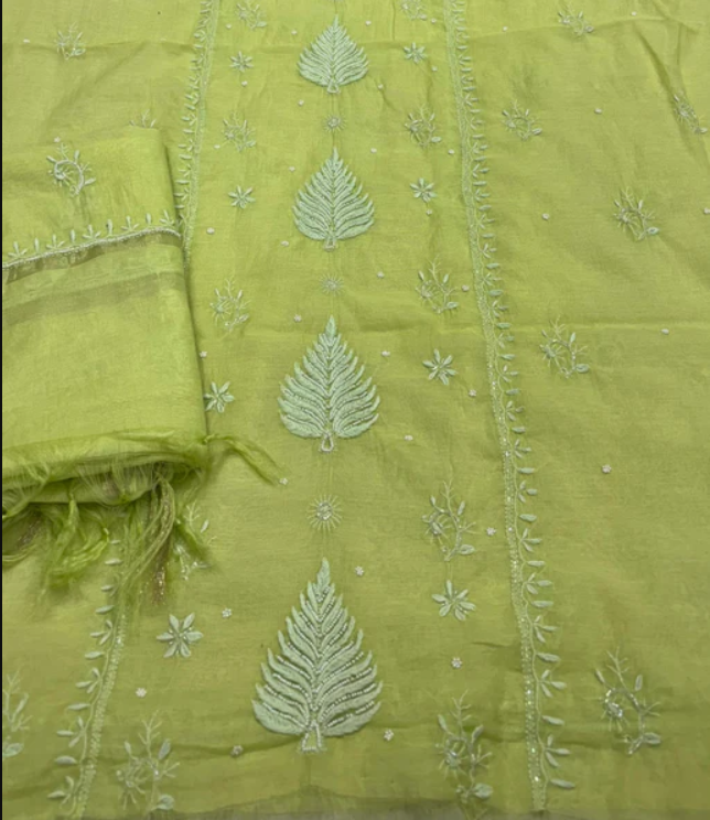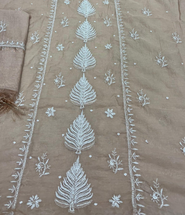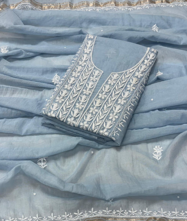 Experience timeless elegance with our handcrafted Chikankari set . Intricately designed with fine hand embroidery across the front and back this ensemble celebrates the rich artistry of handmade Lucknowi Chikankari.