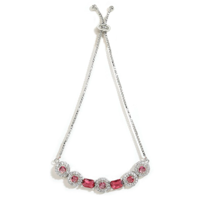 Add a pop of color and elegance to your ensemble with this adjustable silver-tone bracelet, adorned with vibrant red and sparkling white stones. Perfect for festive occasions, casual wear, or gifting, it combines style, versatility, and comfort in one exquisite accessory.
