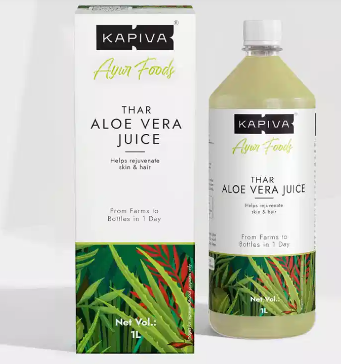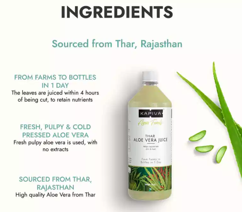 Get luscious hair and smooth skin with one of our bestsellers, Kapiva Aloe Vera Juice. It is sourced from the best quality Aloe Vera from Rajasthan. The leaves are juiced just within 4 hours of being cut, ensuring all nutrients remain intact.