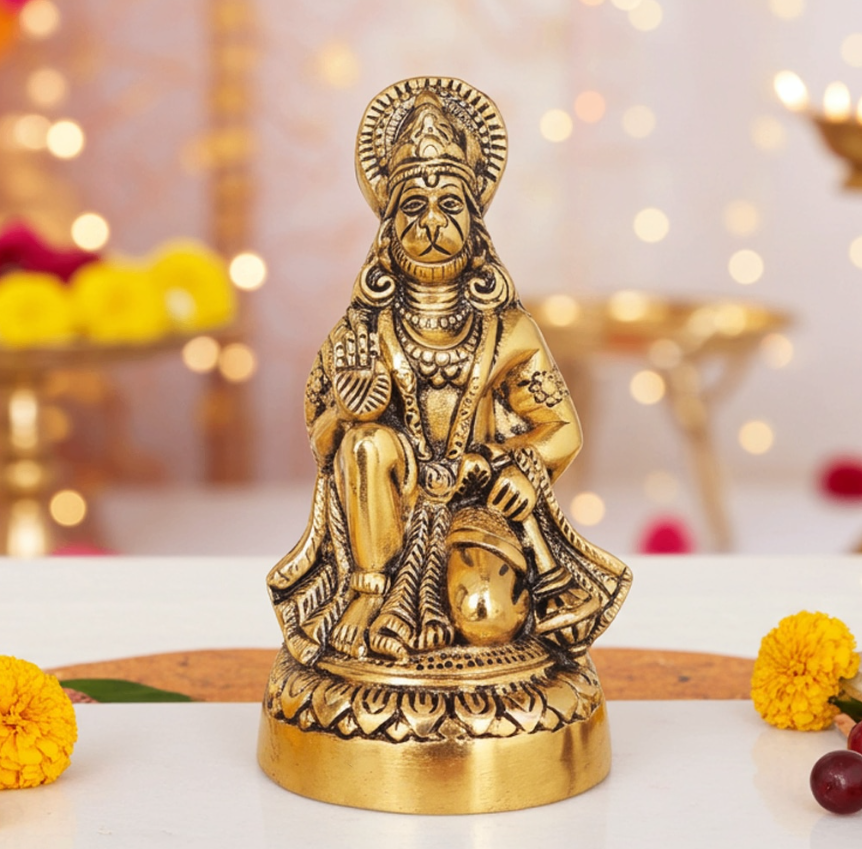 Aluminium Hanuman Ji Statue With Brass Antique Artistic Finish, Height : 6.2 Inch