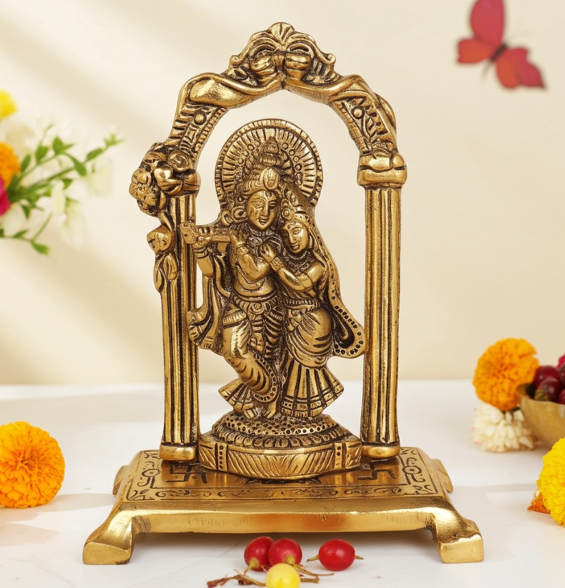Aluminium Radha Krishna Idol – Spiritual Decorative Showpiece