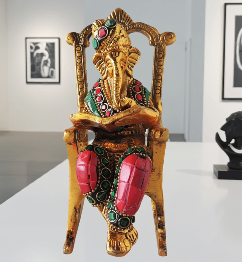 Aluminium Showpiece Chair Ganesh Ji Statue