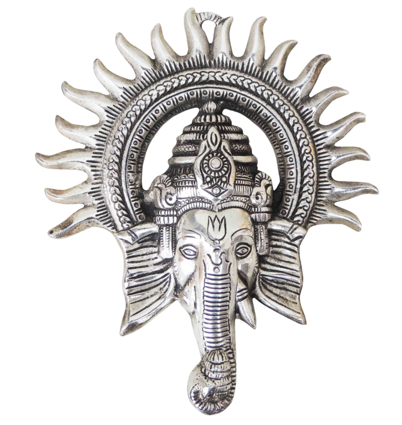 Aluminium Showpiece Ganesh Circle Wall Hanging Silver