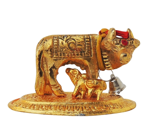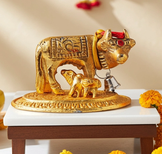 • Design: A charming small cow figurine (often shown with or without calf) that adds an elegant traditional touch to shelves, mantels, pooja rooms, and centrepieces.