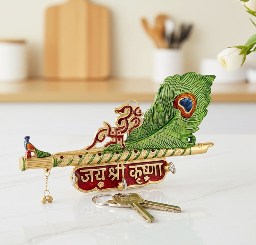 Aluminium Showpiece More Pankhi Key Holder Silver Statue