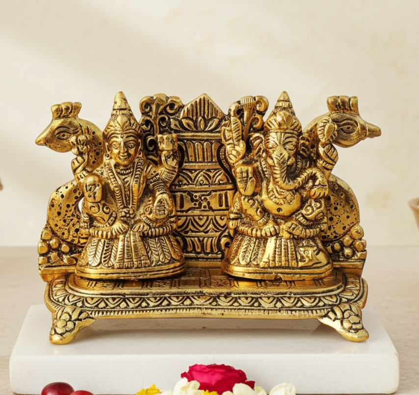 Aluminium Showpiece Peacock Laxmi Ganesh Statue