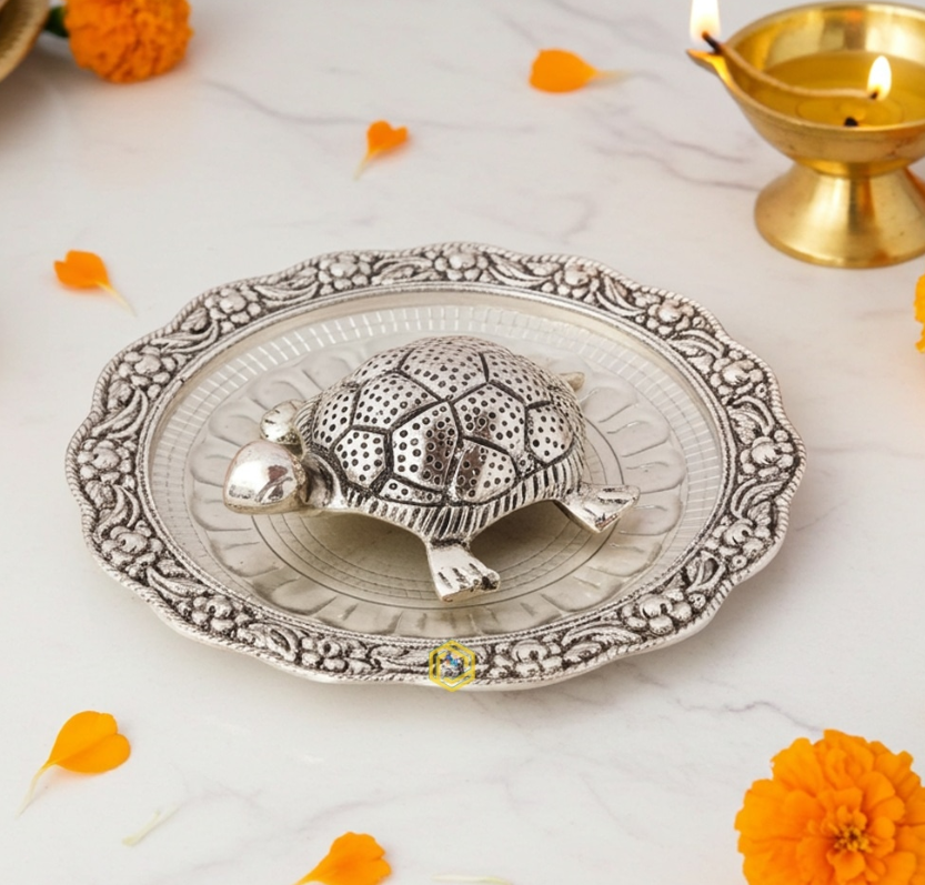Invite stability, longevity, and positive energy into your space with this Aluminium Showpiece Tortoise Statue With Glass Plate. Expertly crafted from premium-quality aluminium, this elegant showpiece features a finely detailed tortoise placed on a sleek glass plate, creating a perfect blend of traditional symbolism and modern design.