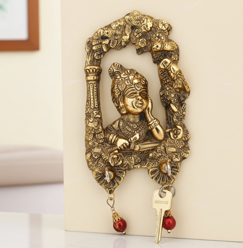 Aluminium Showpiece Wall Haging Key Holder With Krishna Statue
