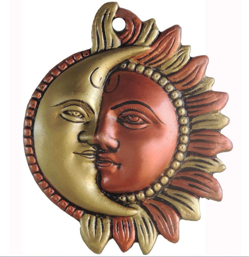 Aluminium Wall Hanging Showpiece Sun & Moon Face [Suraj & Chandrama]