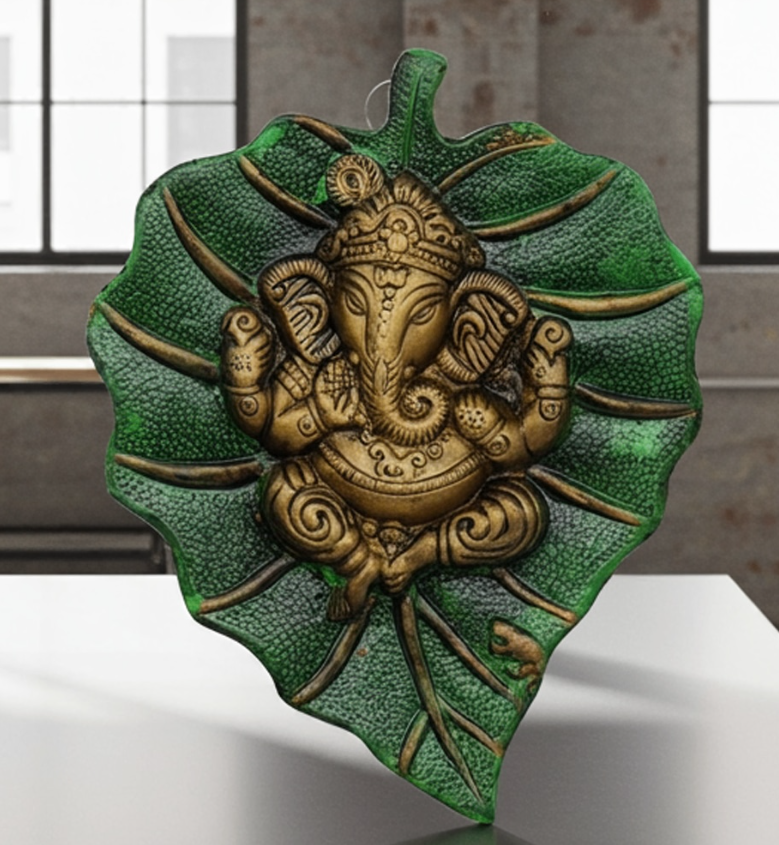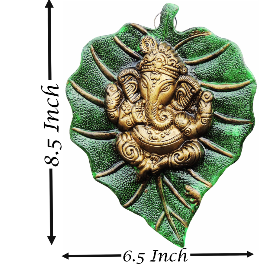 Aluminum Showpiece Ganesh Patta Green Color Statue