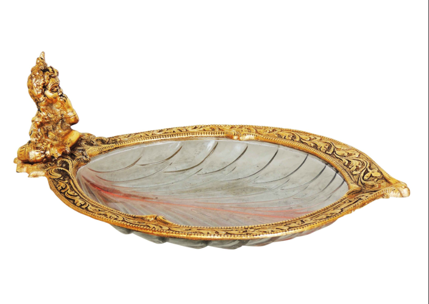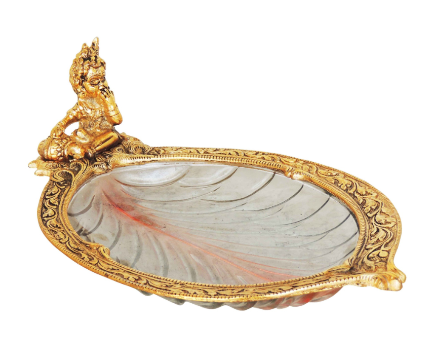 Aluminum With Glass Showpiece Laddu Gopal Plate Statue
