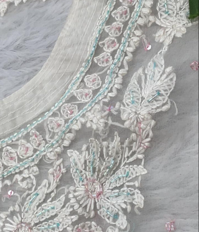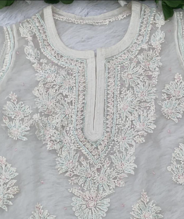 - Embroidery Color: White (tone-on-tone Chikankari embroidery)