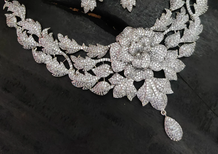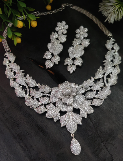 • Firaki White American Diamond Necklace Set – Elegant and statement-worthy set perfect for weddings or receptions.