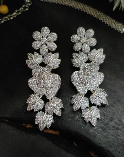 • Beautiful White American Diamond Necklace Set with Earrings – Very budget-friendly with matching earrings included.
