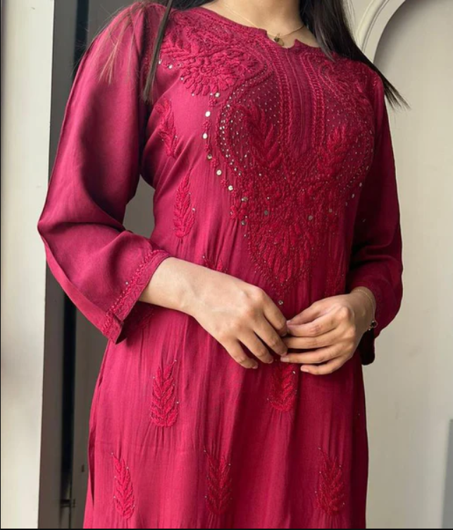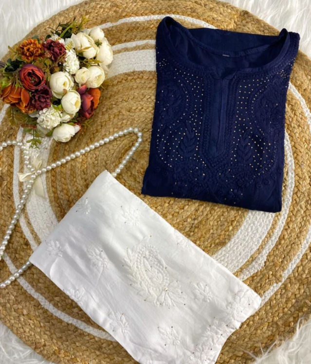 - Embroidery Color: Blue (self-colored Chikankari)