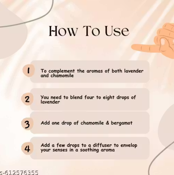 - Contents: Bergamot, Chamomile, and Lavender essential oils
