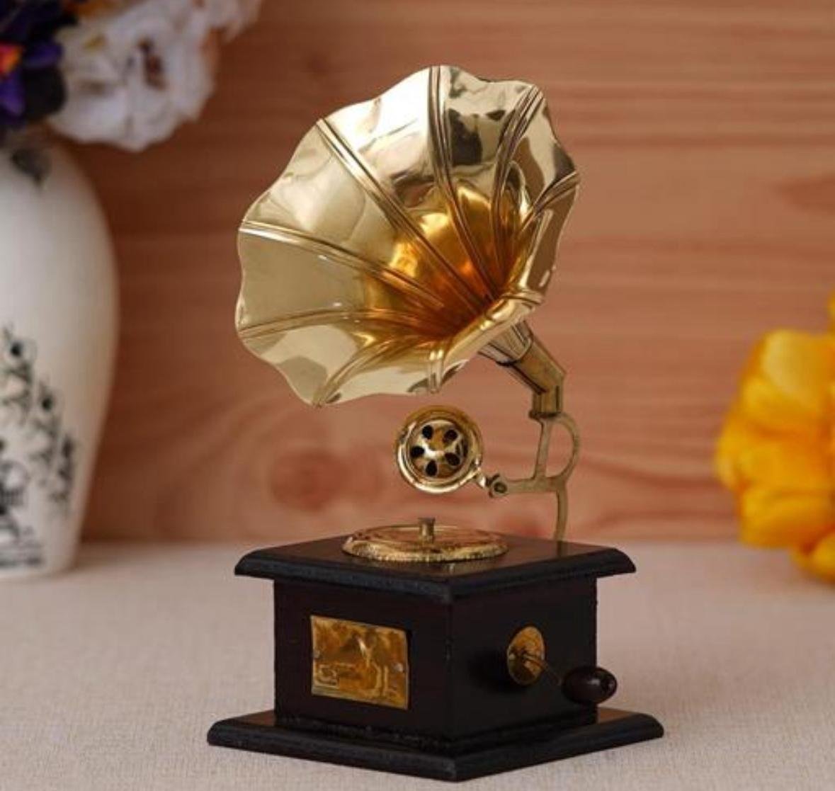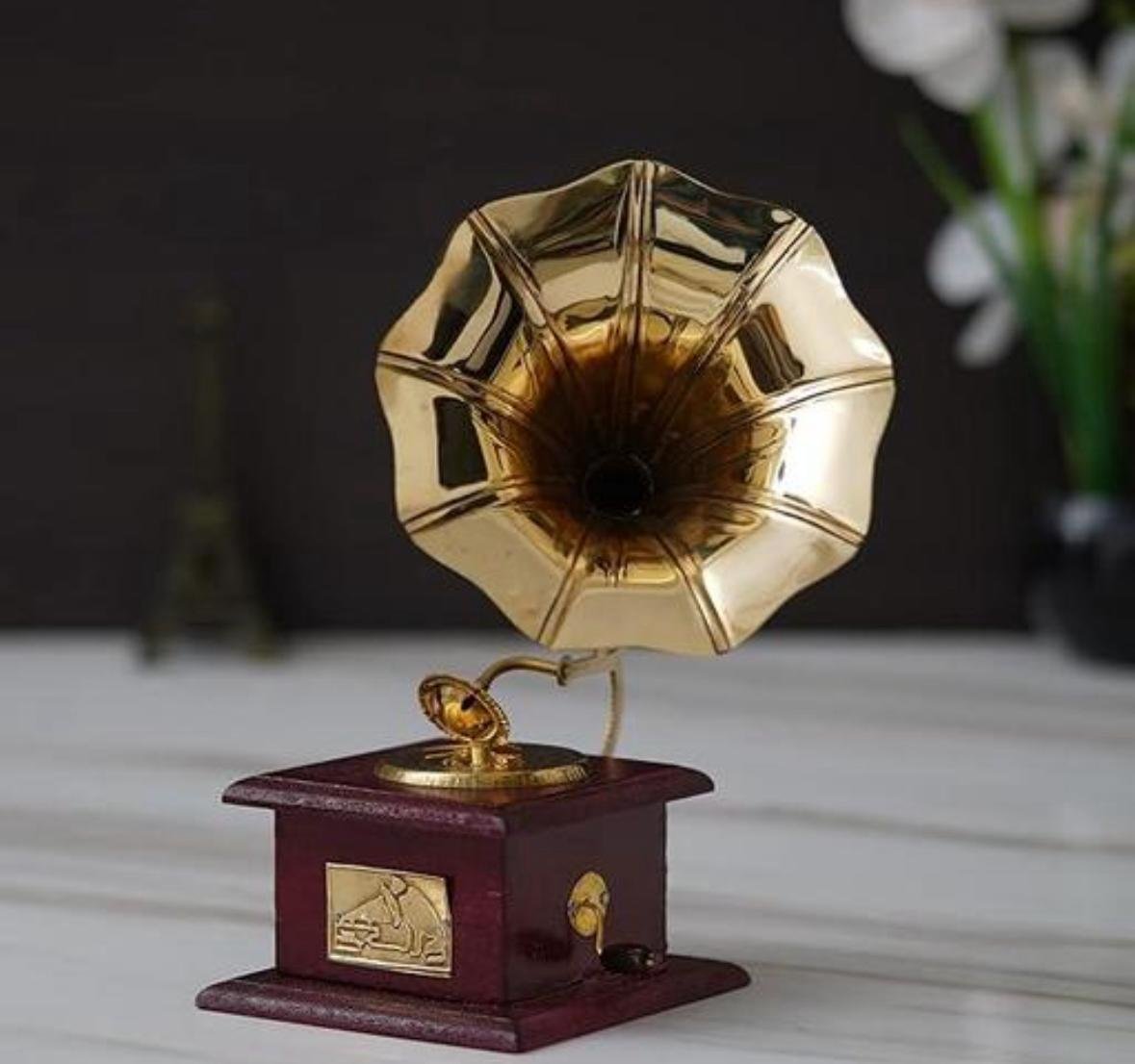 Antique Handcrafted Brass Gramophone, Music Shelf Table Decorative Showpiece for Home Décor Brass Gramophone Showpiece
