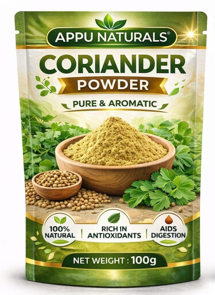 Appu Natural Organic Dhaniya Powder, Traditional Dhania Powder, Authentic Indian Coriander Powder, Suitable for All Your Cooking Needs, NPOP Organic Certified (100 Gm)
