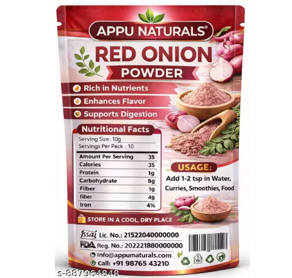 Appu Naturals Red Onion Powder, Natural Dehydrated Pyaz Powder, No Preservatives, No Additives, Ready-to-Use Cooking Seasoning for Indian Dishes