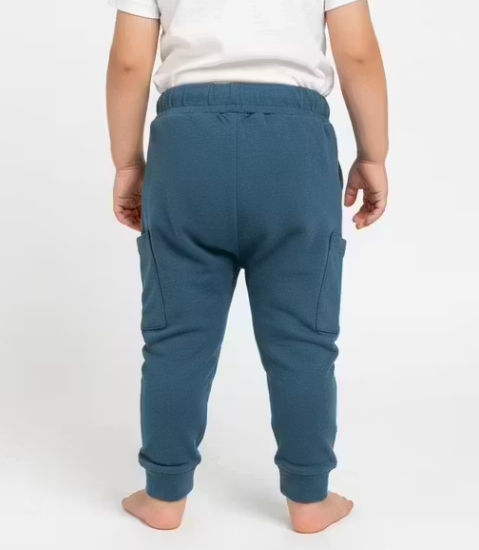 Upgrade your little one’s wardrobe with these boys’ blue cargo pants. Made from a comfortable cotton blend with a knitted texture, these pants feature a skinny fit and elastic waistband for ease of wear. The full-length design and two functional pockets make them perfect for casual outings, school, or playtime. With a solid color and versatile style, these cargo pants are a practical and stylish addition to any kid’s wardrobe. Proudly made in India.