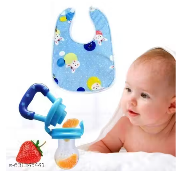 Make mealtime safe, fun, and mess-free with this Baby Feeding Set, which includes a convenient fruit feeder and a soft baby bib. The fruit feeder allows your little one to enjoy fresh fruits safely while soothing their gums, and the bib keeps clothes clean during feeding.