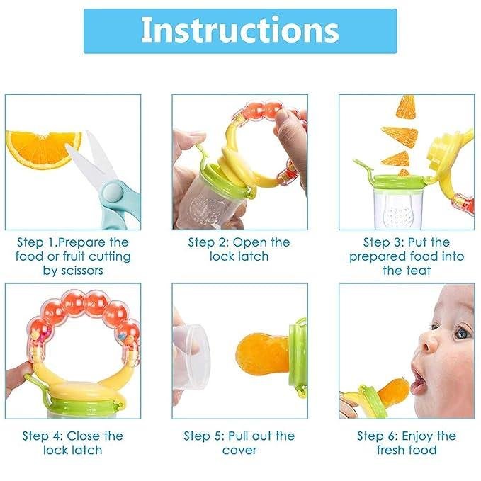 - Safe & BPA-Free Material - Made from 100% food-grade silicone and polypropylene, this baby fruit feeder is BPA-free, non-toxic, and safe for everyday use—perfect for newborns and infants starting solids.
