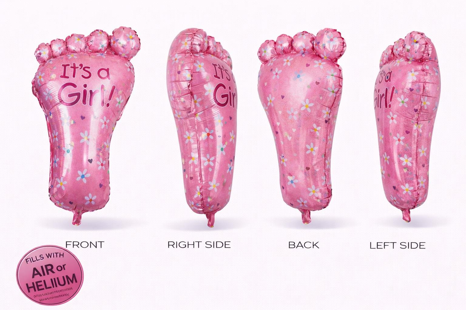 - New Born Baby It’s A Boy & It’s A Girl Feet Shaped Foil Balloon – Cute option for both boy & girl themed foot balloons.