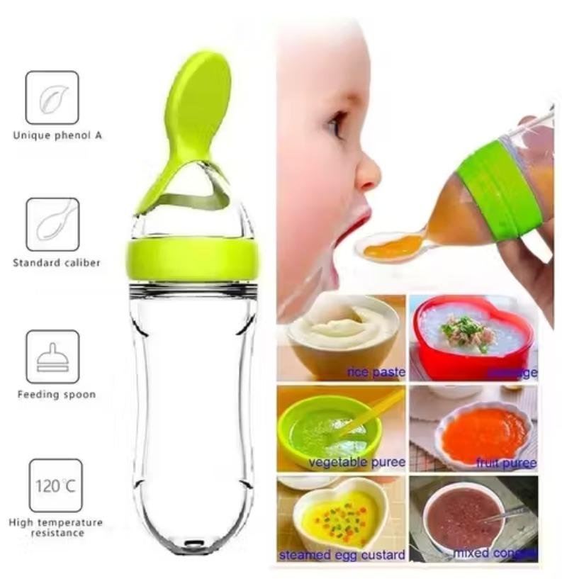 🍼 Baby Spoon Feeding Bottle – Soft Silicone Squeeze Bottle