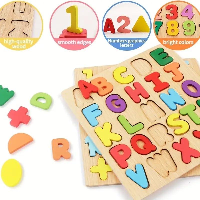 - Alphanumeric Graphics Cognitive: This engaging set includes 20 number puzzles, 5 calculation symbols, 26 English alphabet puzzles, and 16 shape puzzles. Made from durable natural wood with bright colours, it helps cultivate a child's cognitive and memory skills. Perfect kids toys for 2 - 5 years boy and an ideal choice for toys for 2+ year old boy to enhance learning through play.