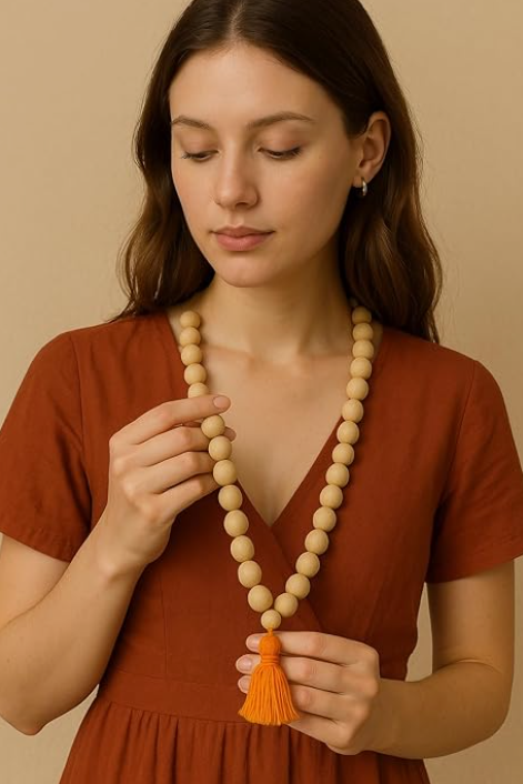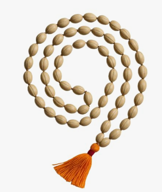Baijanti Mala Prayer Beads, 108 Beads with Orange Tassel, Traditional Meditation and Pooja Necklace