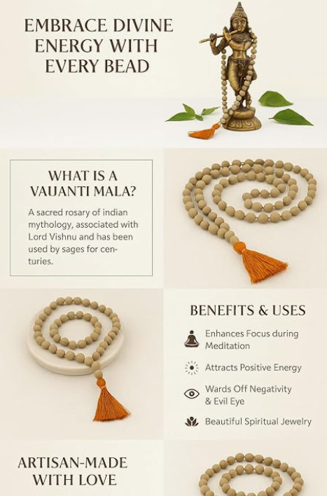 - HANDCRAFTED QUALITY: Each mala is carefully handmade using genuine Vaijanti beads, ensuring durability and authentic appearance