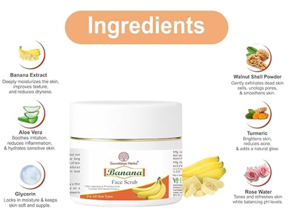 - 1. Nourishing Exfoliation: Infused with banana extract that deeply nourishes dry skin while gently removing dead cells.