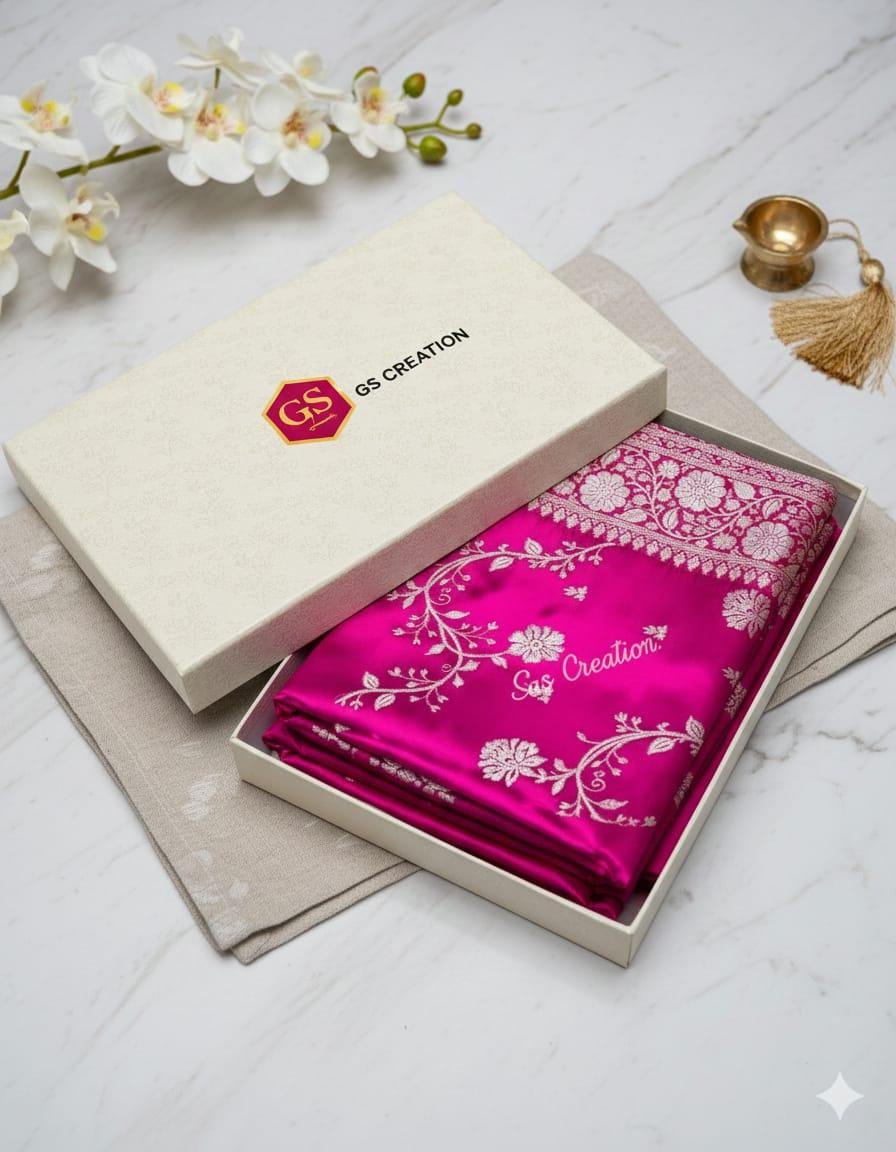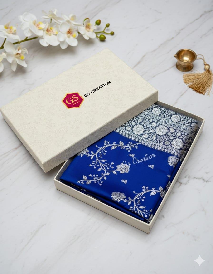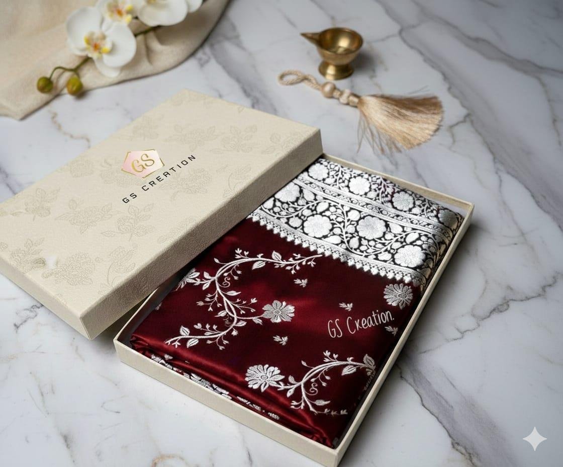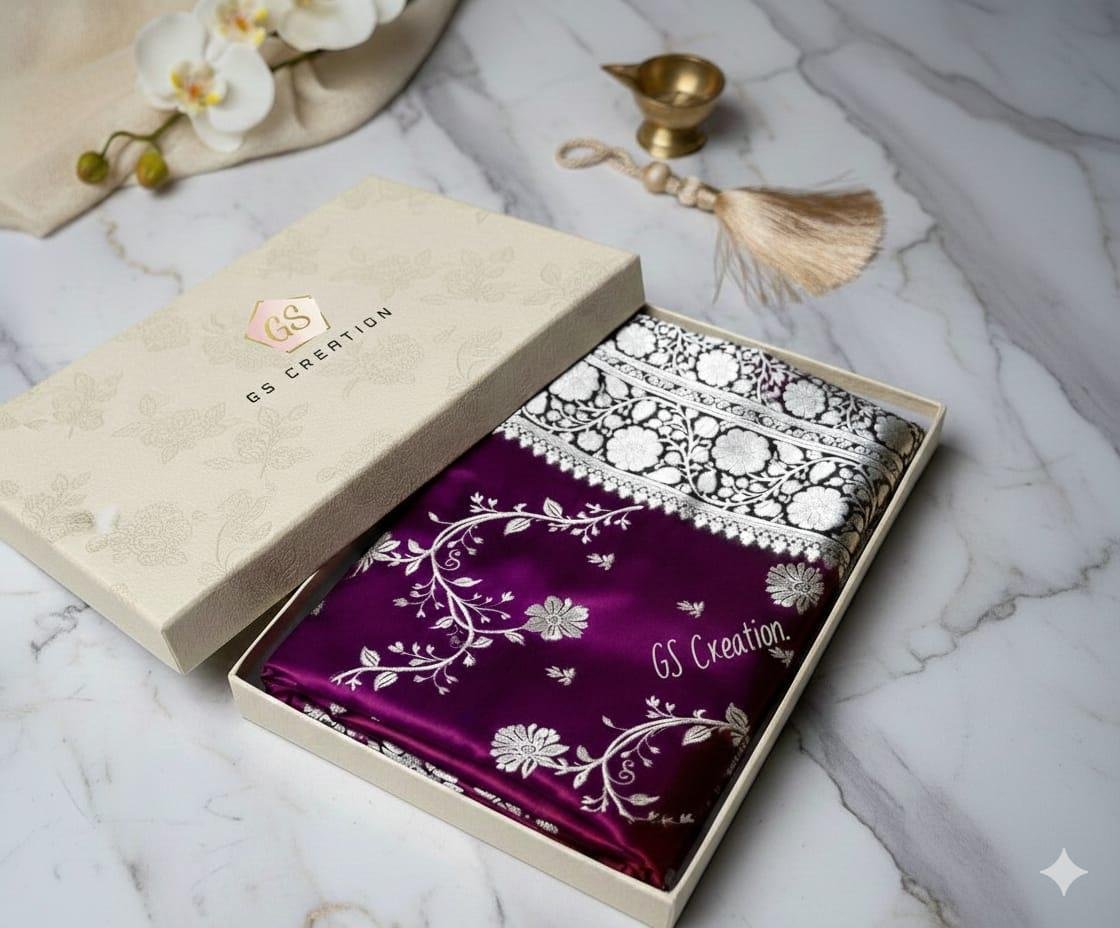 * Premium Banarasi weaving with rich gold zari