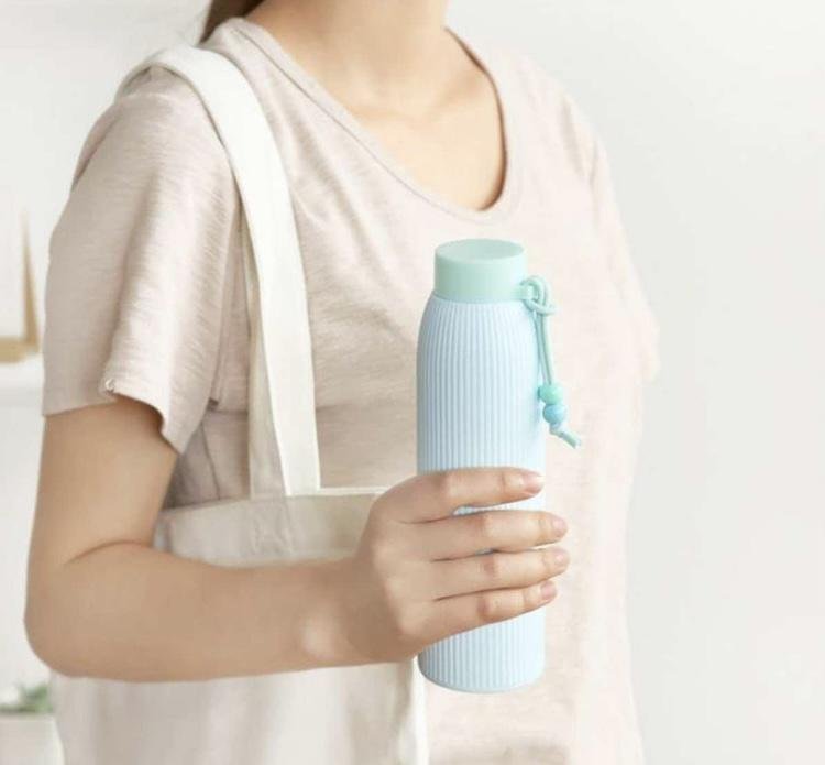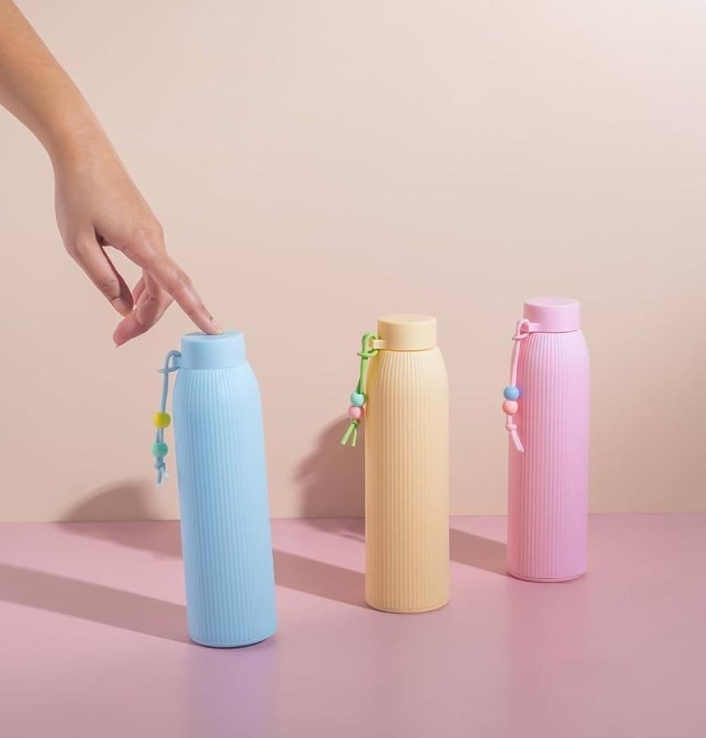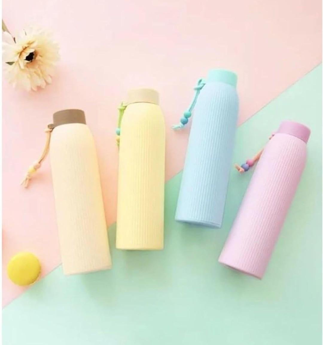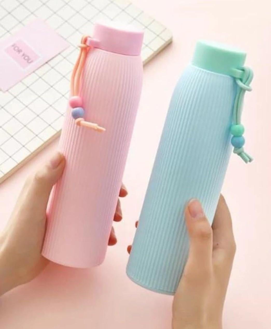BARBAR KHARIDO Heavy Quality Bean Thread Glass Water Bottle With Silicone Cover 350ml Multicolor