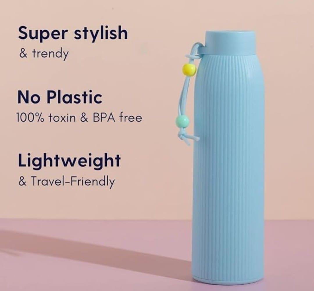 - Durable, lightweight, and portable water bottle with ribbed texture